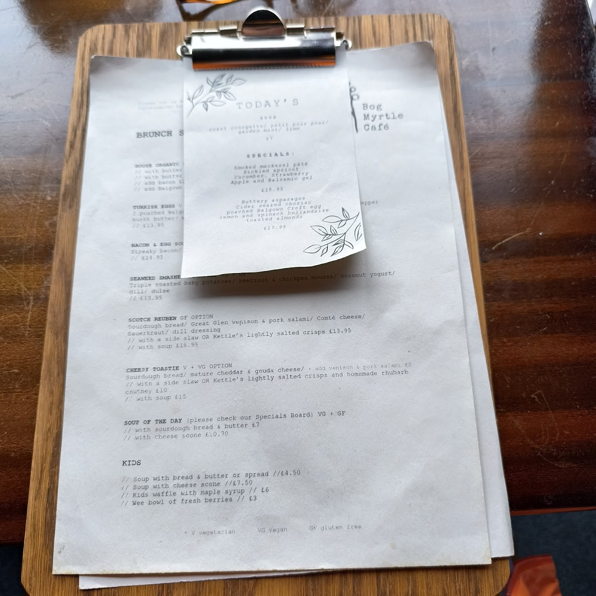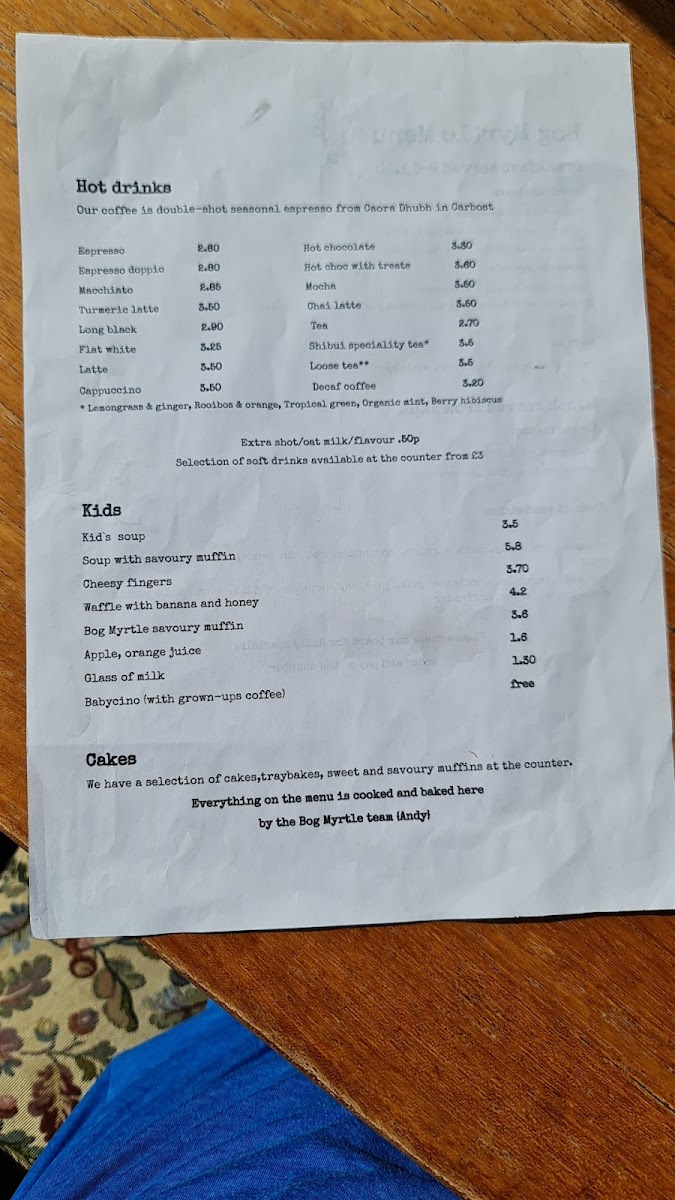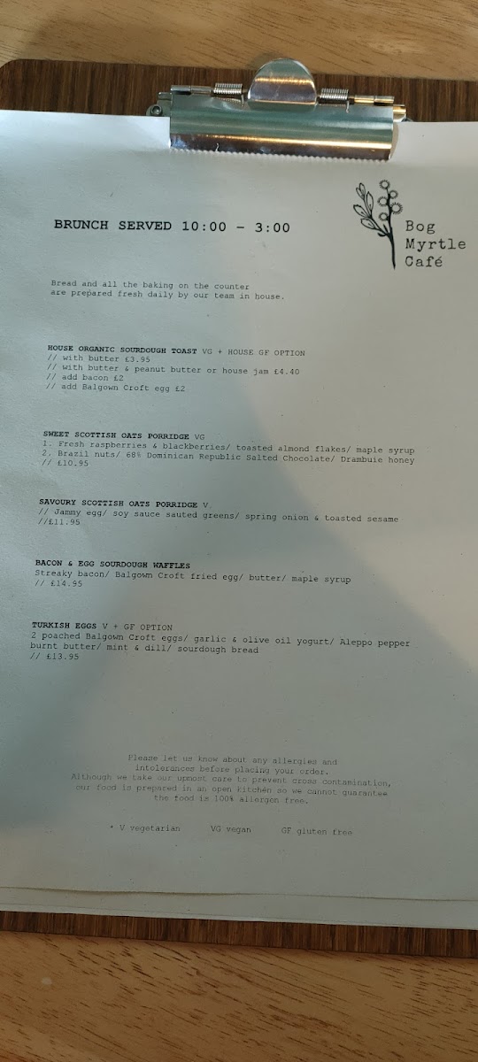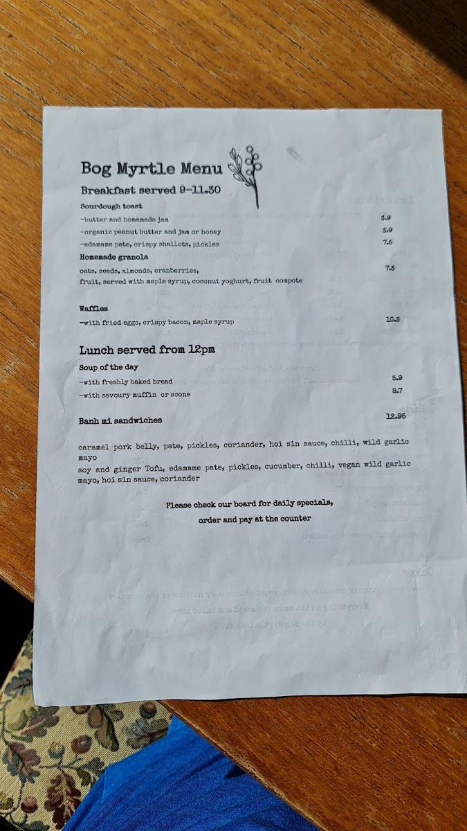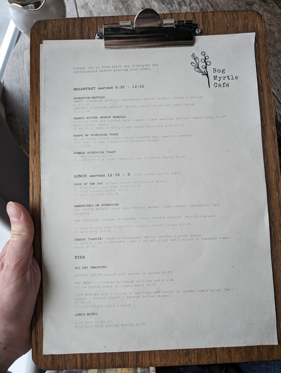 Bog Myrtle Skye Menu